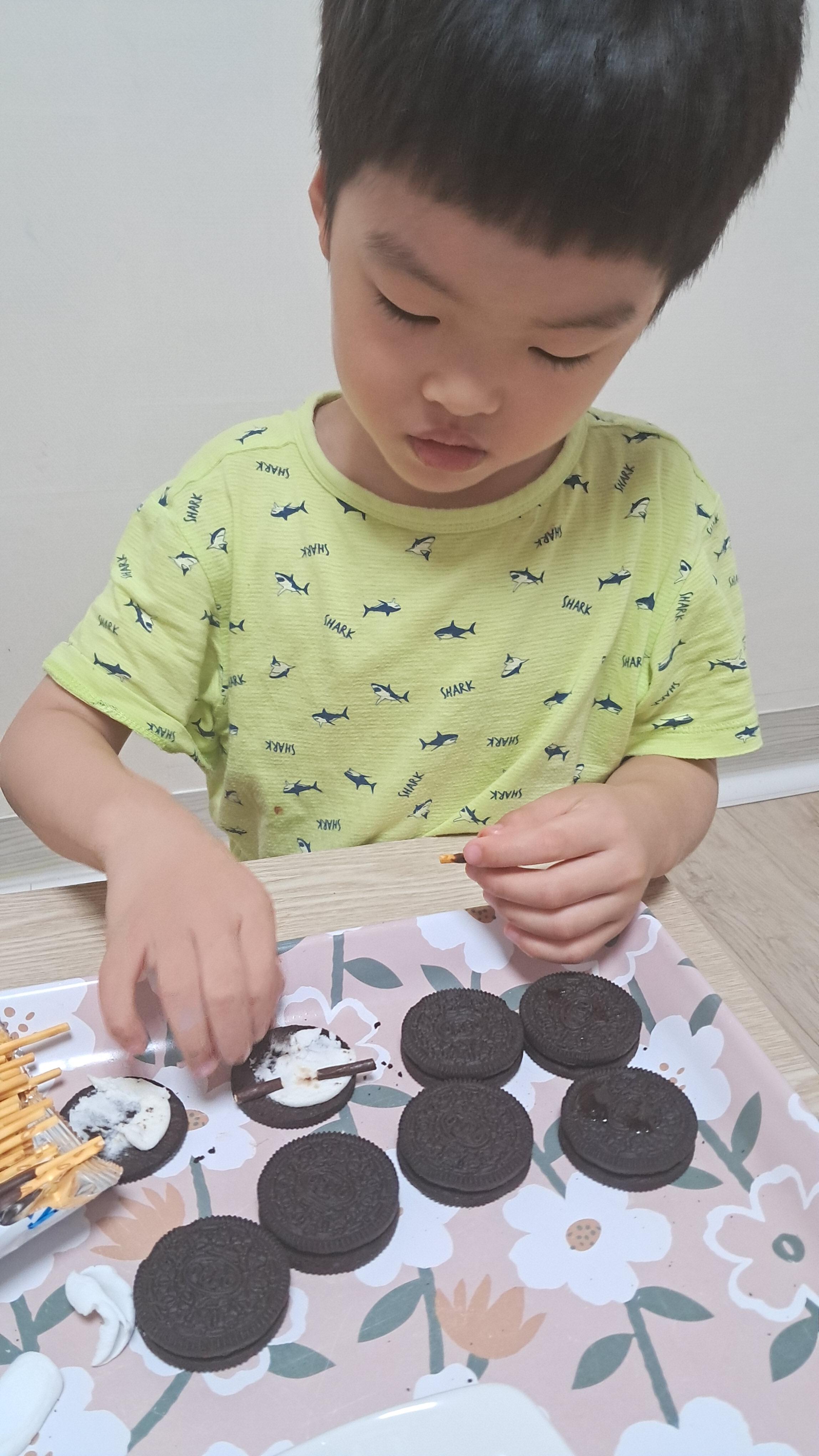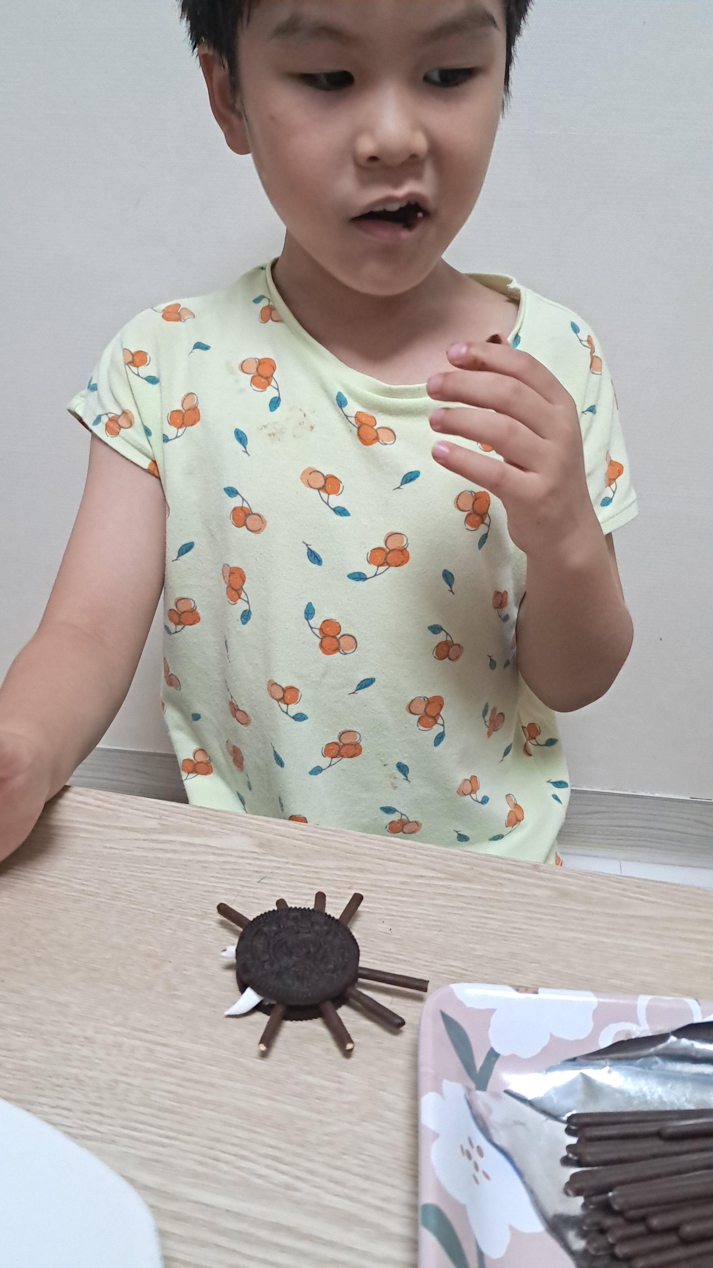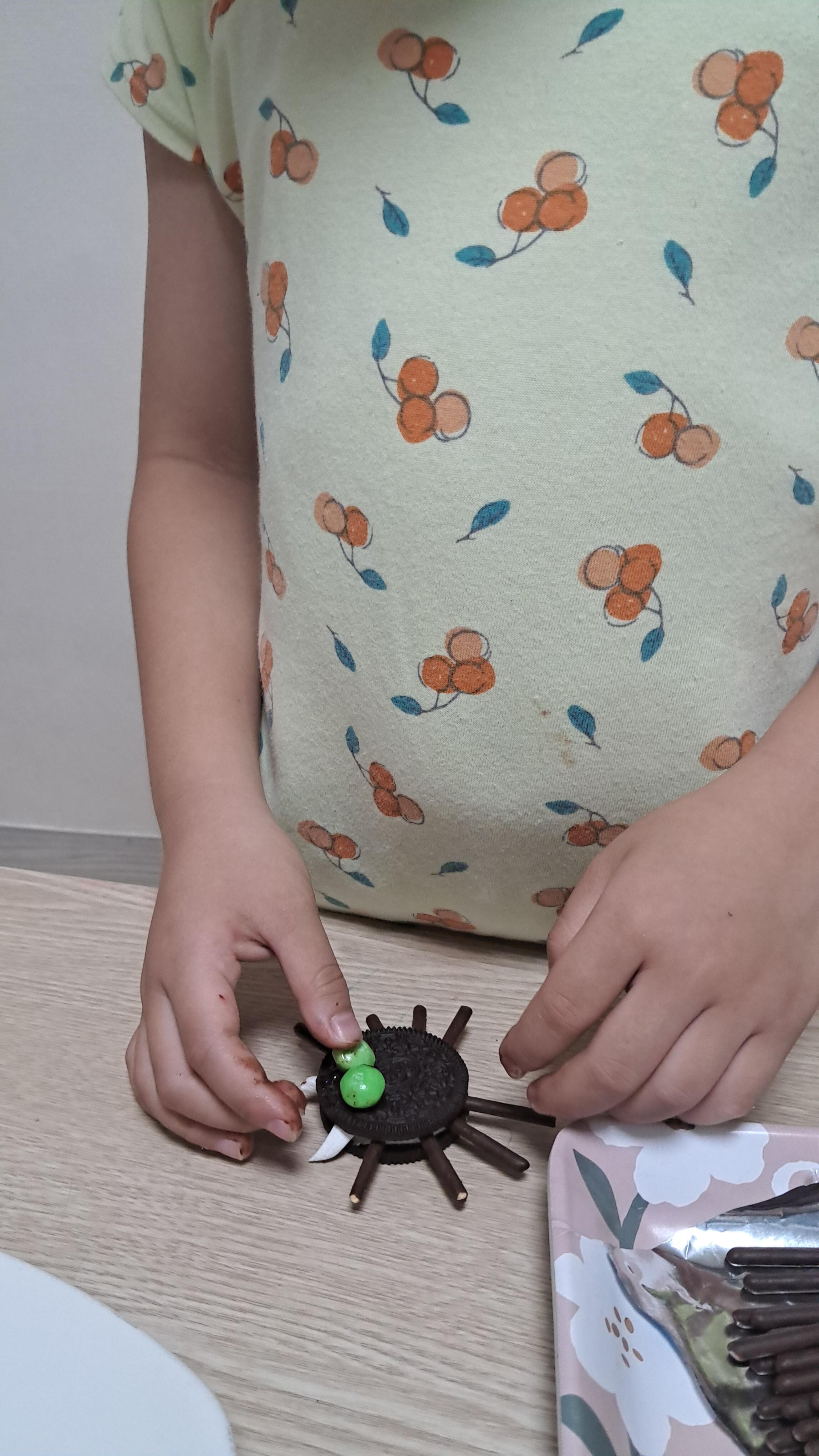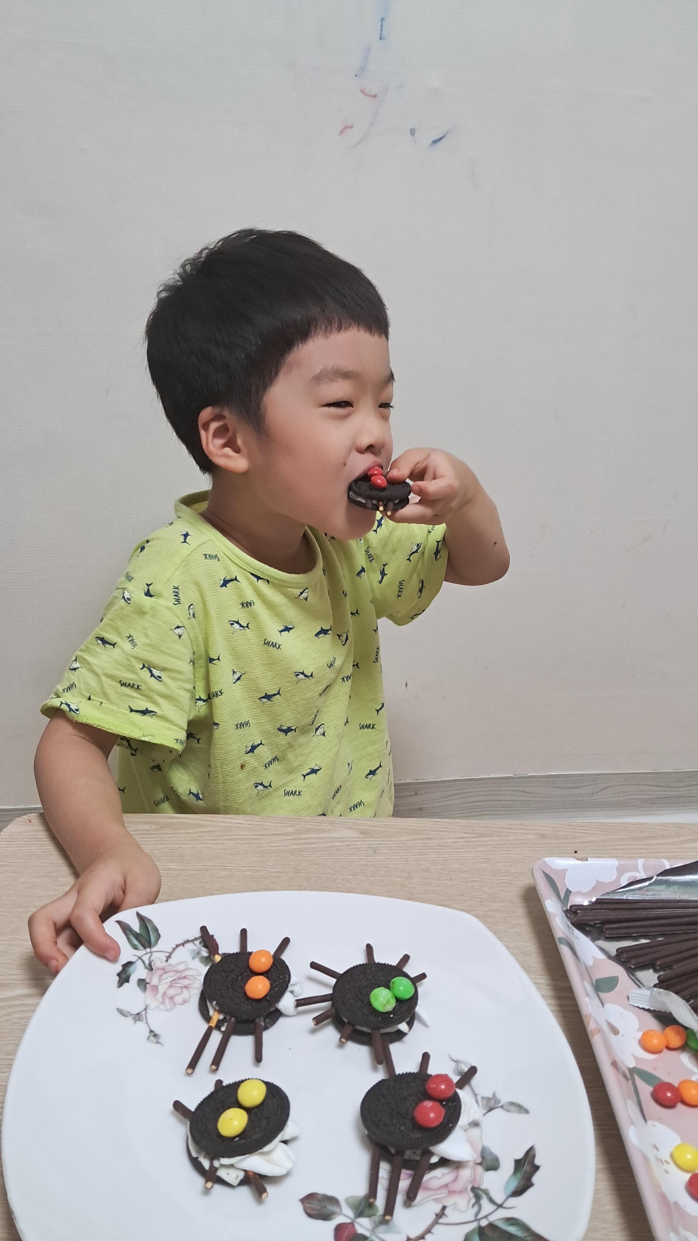 컵밥 먹고 후식으로 과자로 거미 만들기