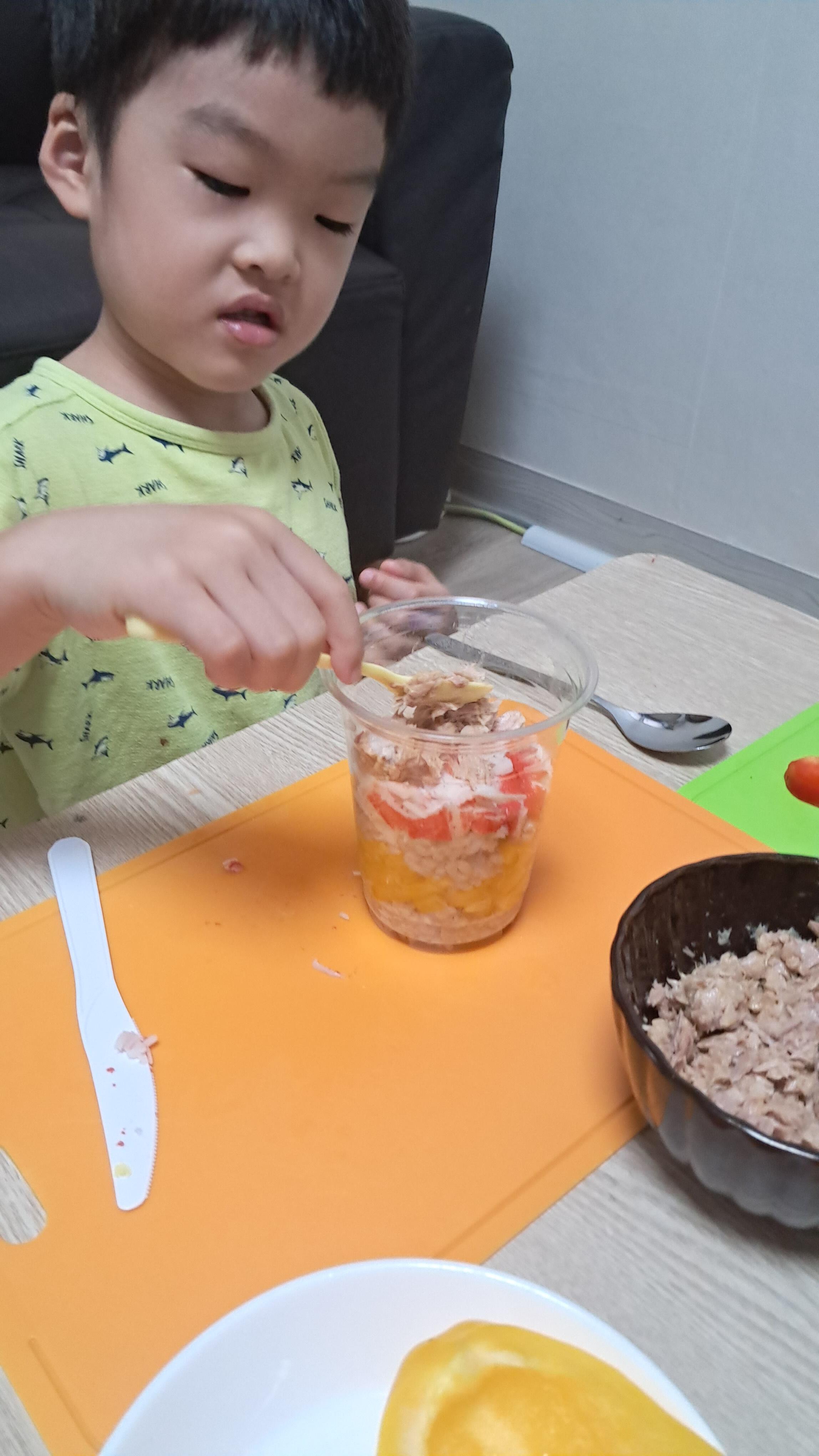 주의할 점) 밥 넣는 것부터 야채 썰기까지 도와주지 말고 스스로 하게 하기