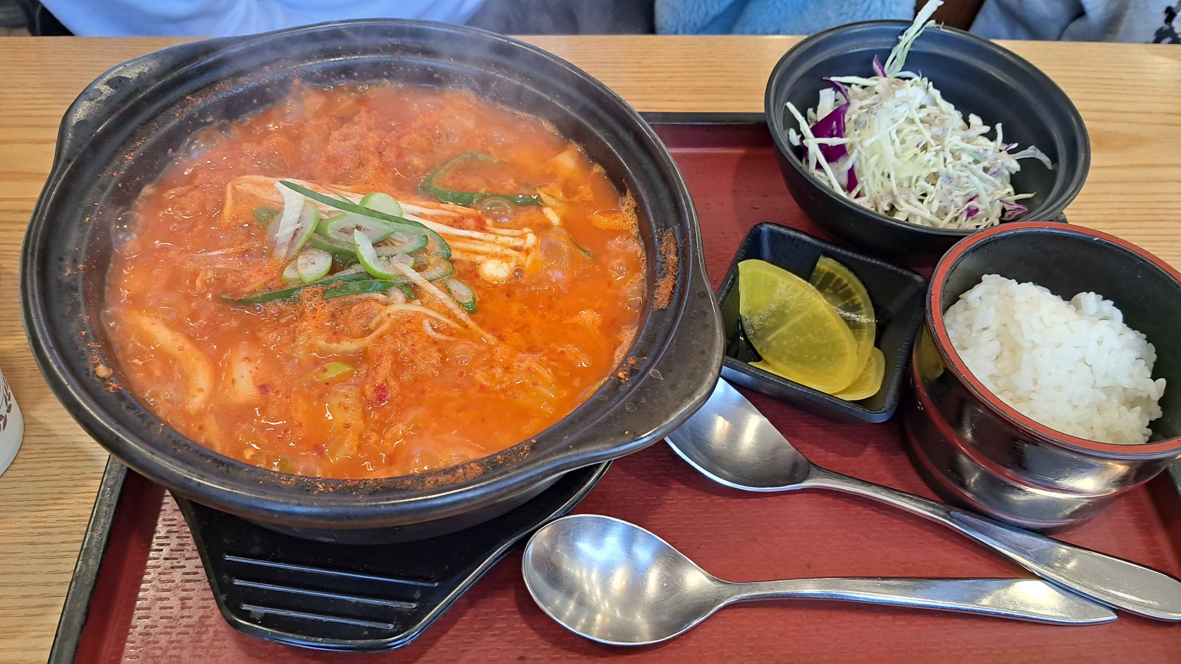 매콤하니 맛있다 위에 돈가스도 맛있지만 밑에 깔려있는 우동면발이 탱글탱글하고 진짜 매콤하니 맛있었다