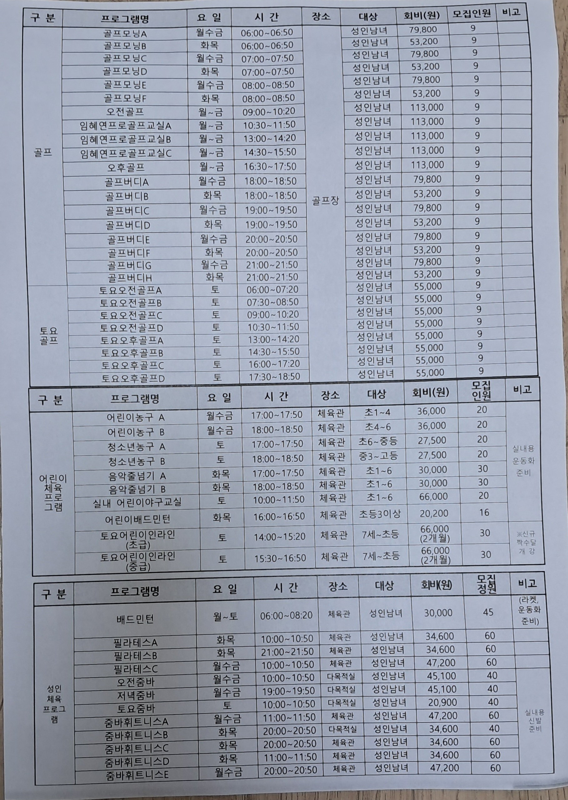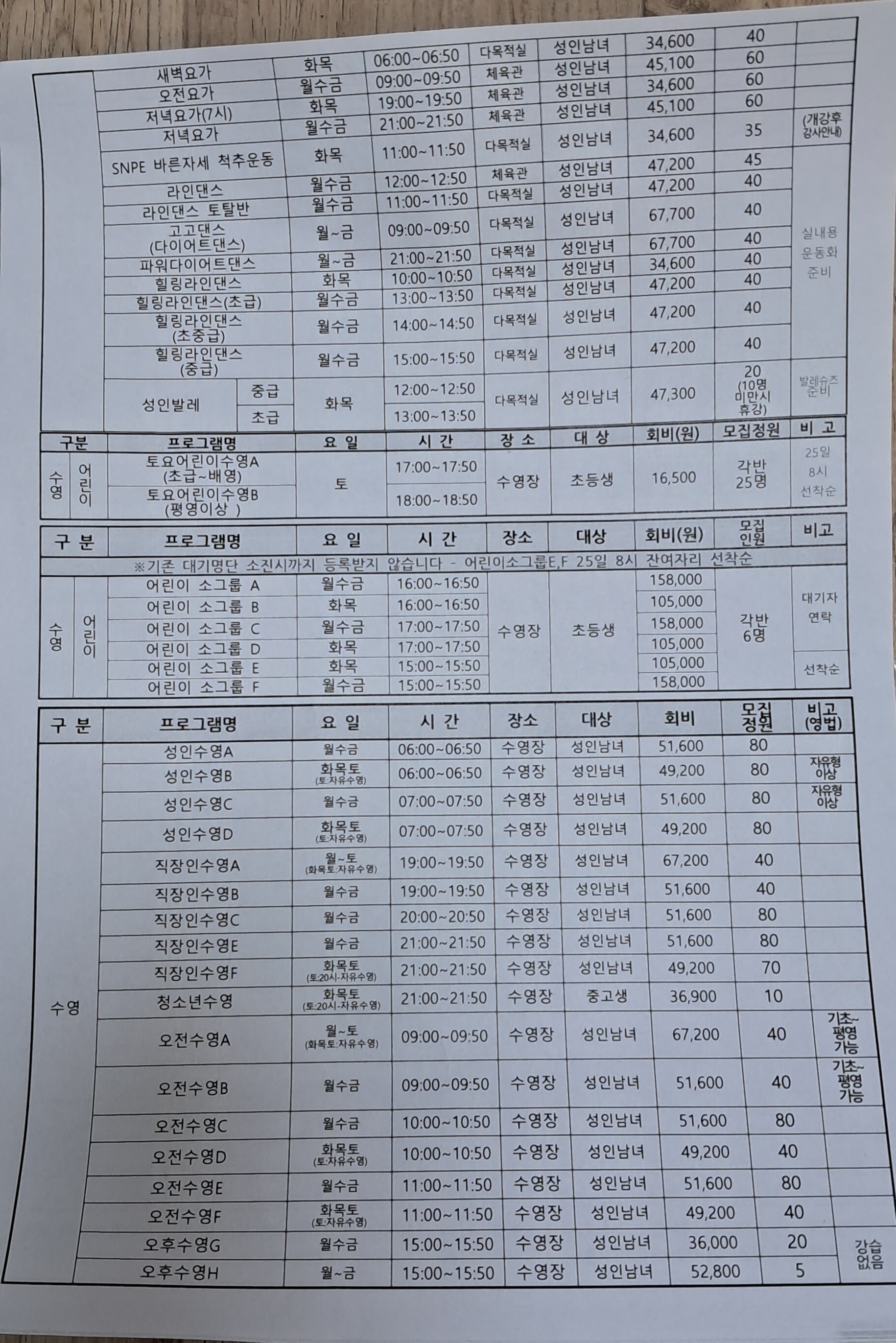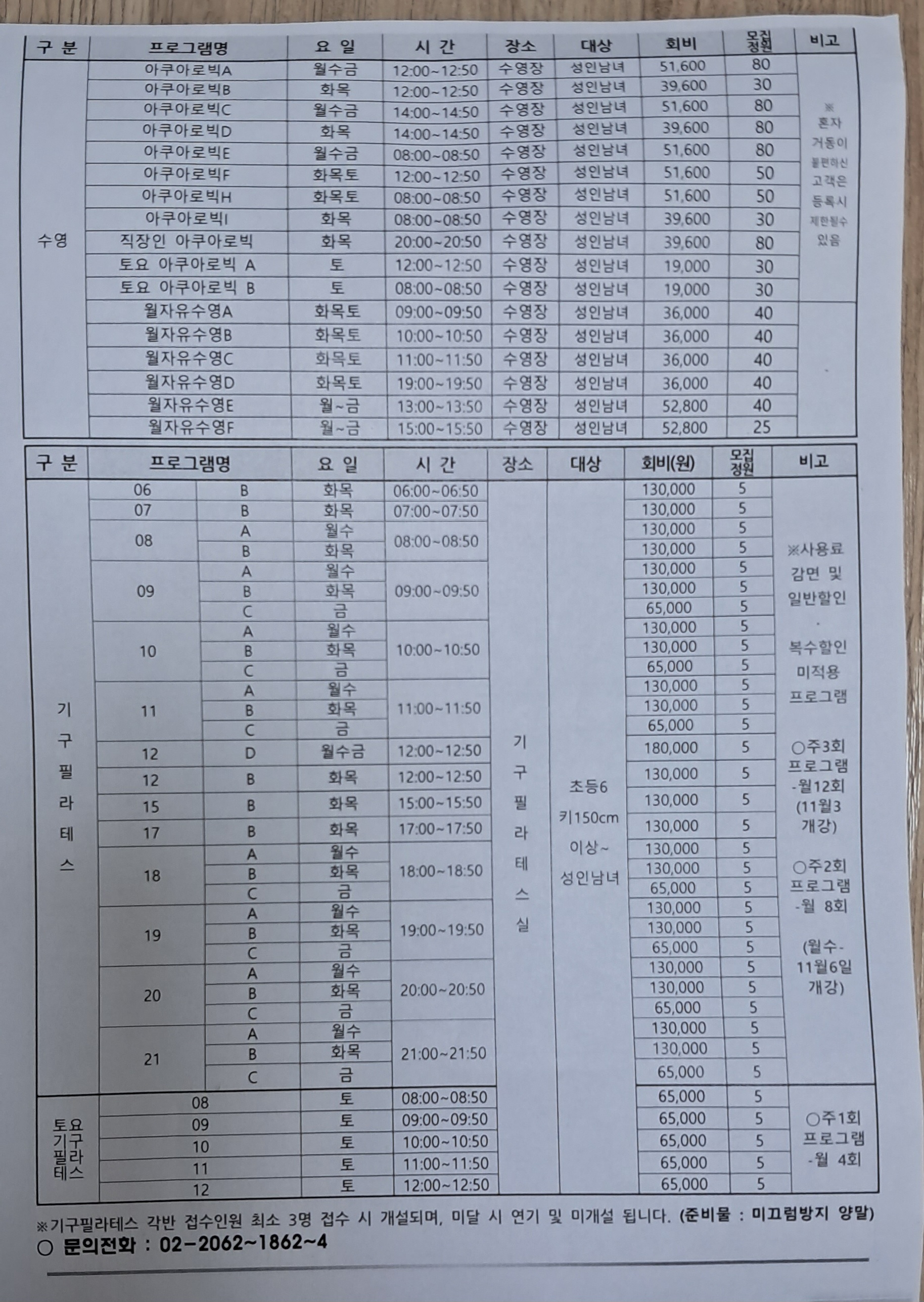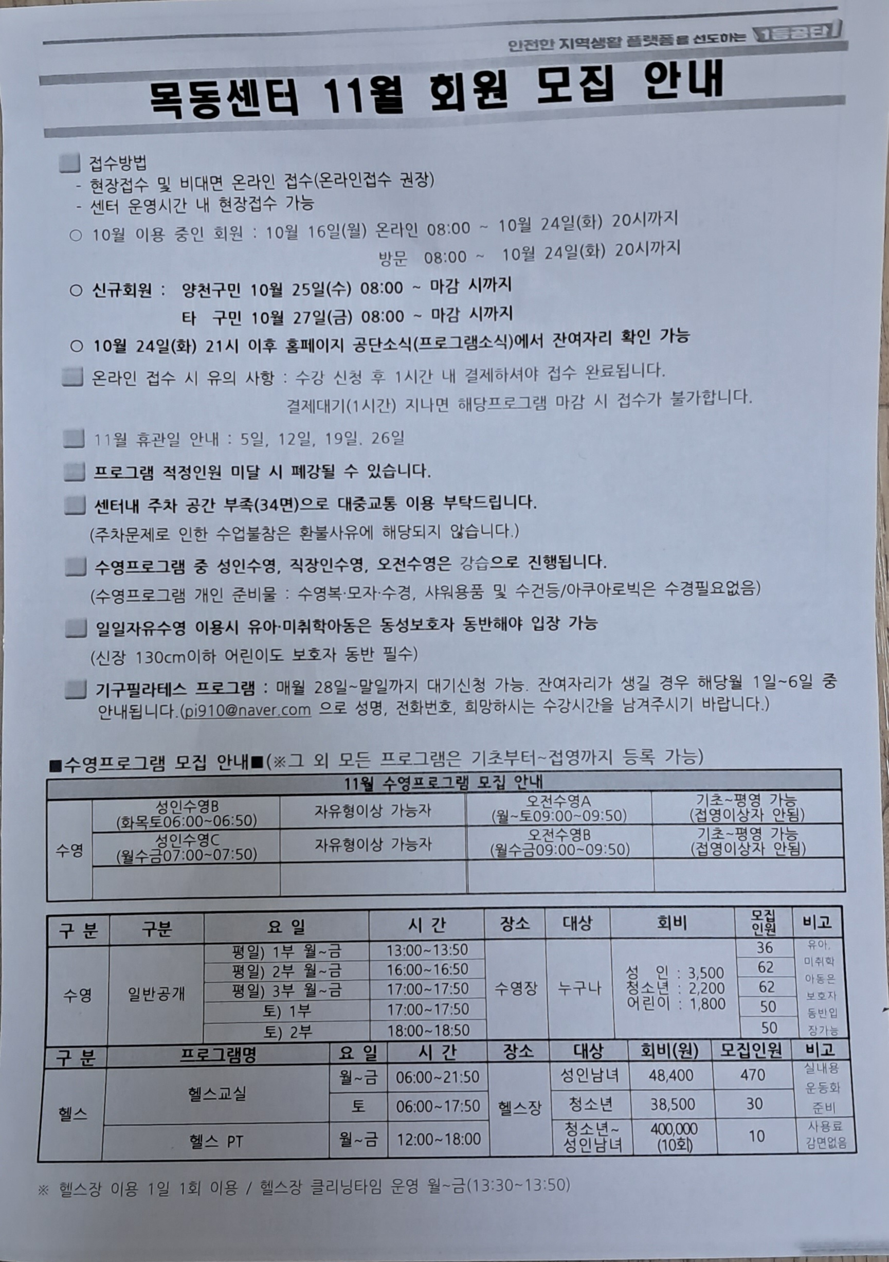 목동문화체육센터 프로그램