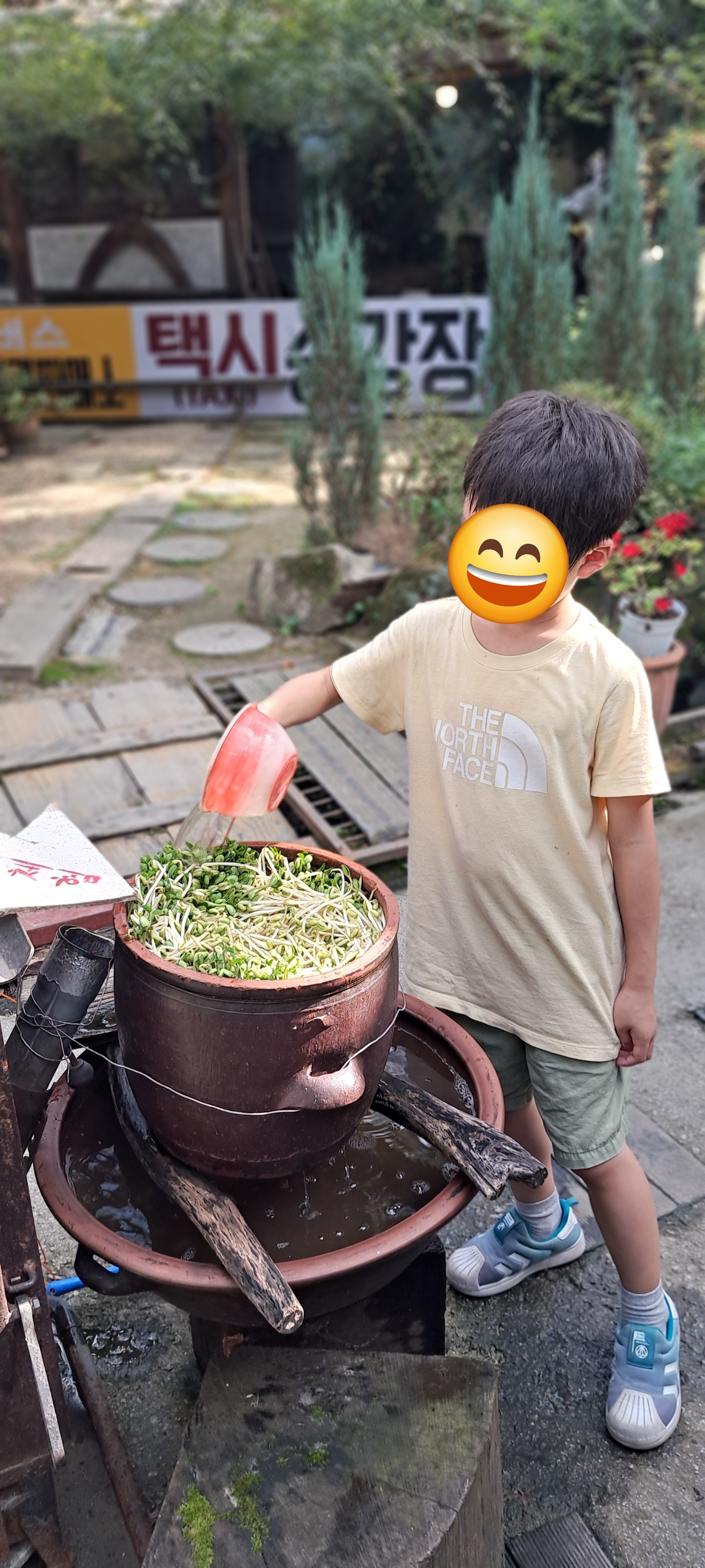 내려와서 콩나물에 물 주기ㅎ