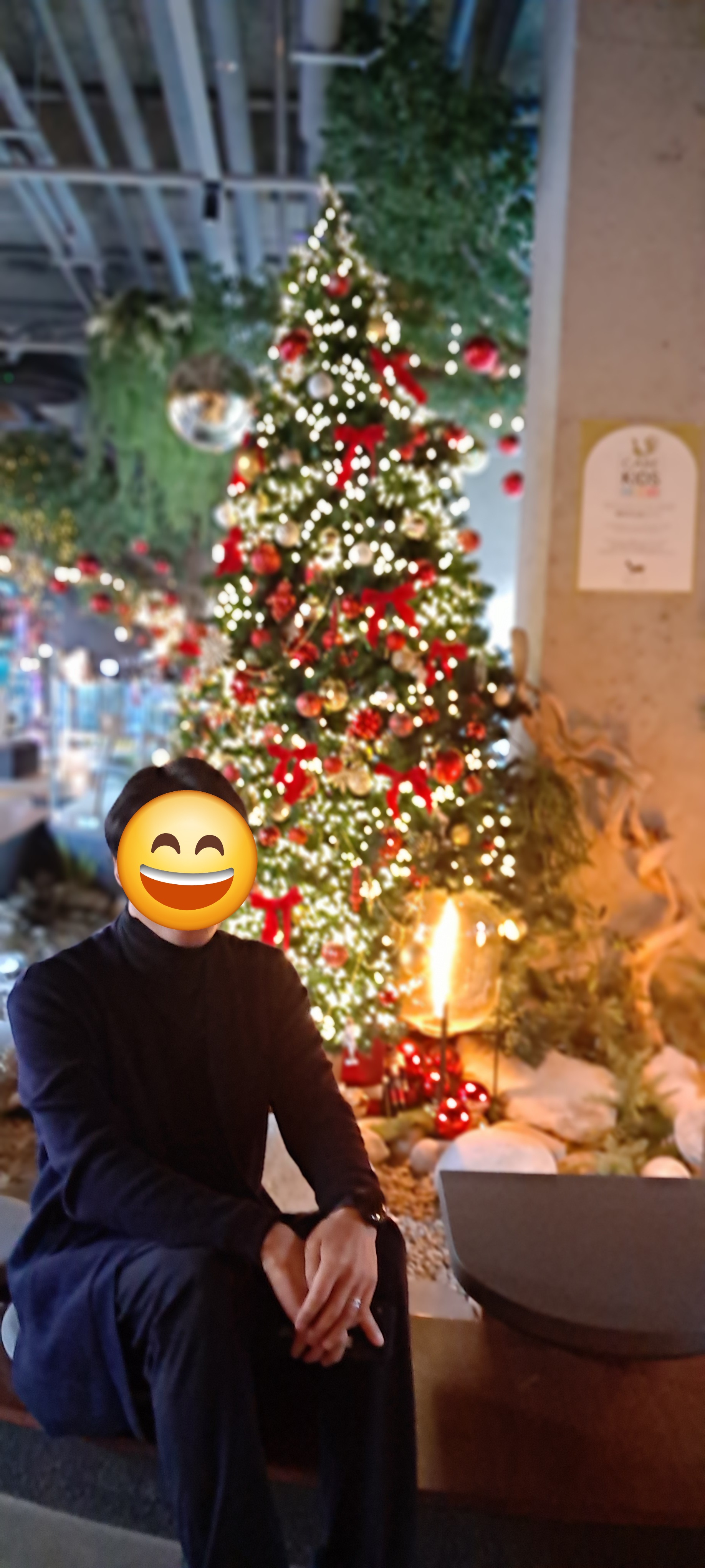 우리 부부도 한 장 찰칵~~!! 트리 옆쪽으로 문이 있고 바깥으로 나갈 수도 있다 바깥에도 꾸며놓았던데 추위를 많이 타는 관계로 나가 보는 건 패스~^^