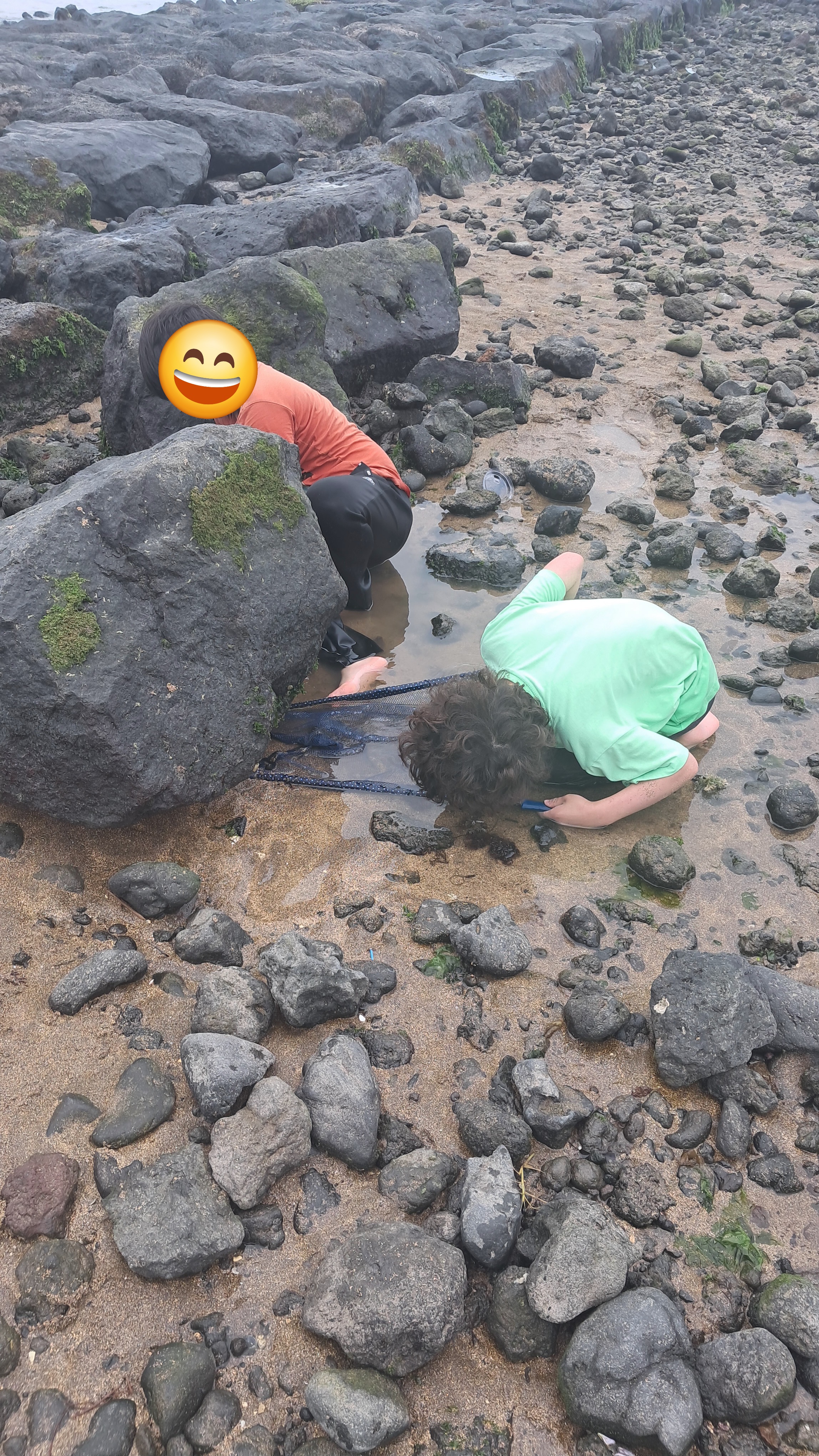 아이들은 바위틈에 숨어있는 새우와 소라게를 잡는다고 난리고ㅎㅎㅎ